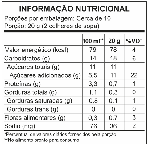 Disponível nas versões: sachê 190g, 300g, 600g e pote de 400g.
